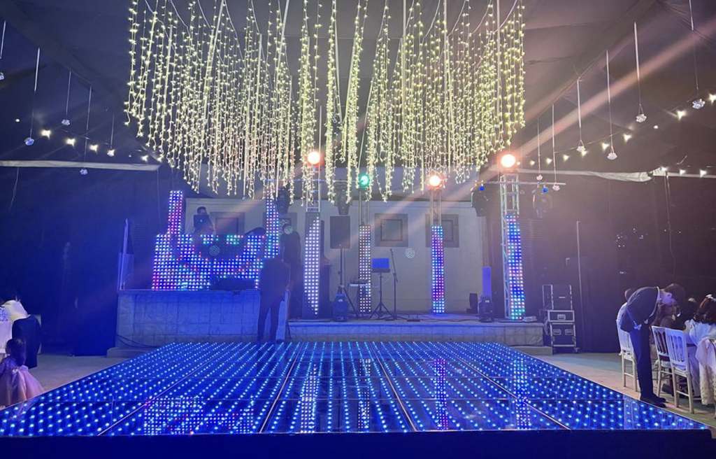 • 1 pista de baile de 7 x 7 mts en diferentes módulos de Luces led (para Finca la Concordia).