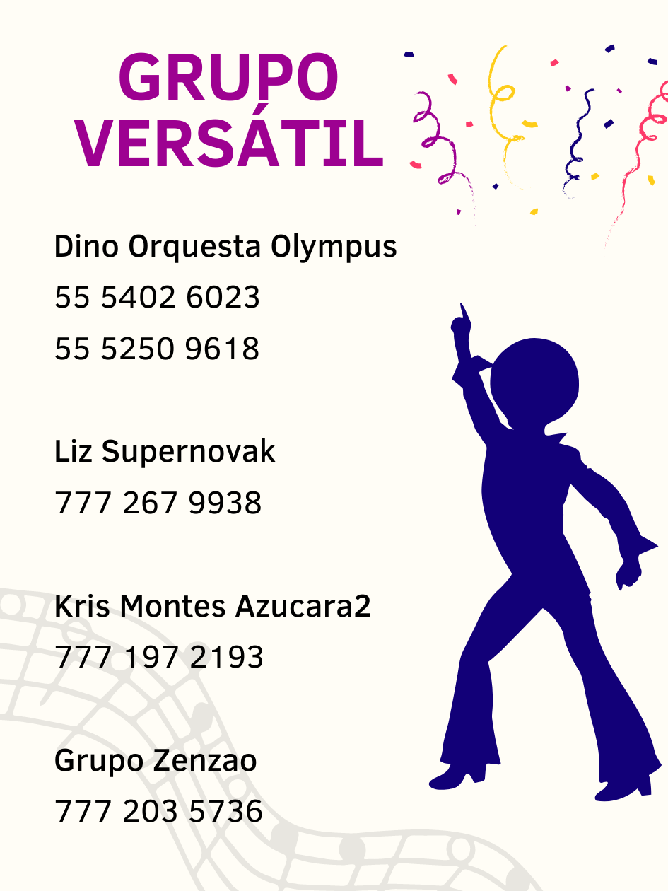 Los mejores grupos versátiles Posted by Ramírez Gastronomía 3 años ¡Que la música y el baile no falten en tu boda! Te dejamos recomendaciones de grupos versátiles para el día de tu boda. Ramírez Gastronomía febrero 9, 2023